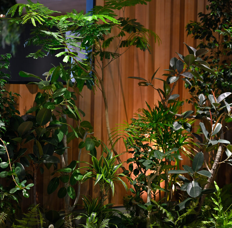 - 自然を取り入れたデザイン:グリーンウォールや鉢植えの植物を配置し、自然の癒し効果を取り入れました。これにより、オフィス内にいながらも心を落ち着かせることのできる環境を実現しました。